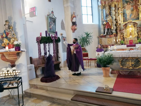Schon am Samstag zum Vorabendgottesdienst war in Krailing alles ebenfalls schon adventlich hergerichtet. Nach dem feierlichen Gottesdienst den Pater Johnson Kattayil mit den Gläubigen