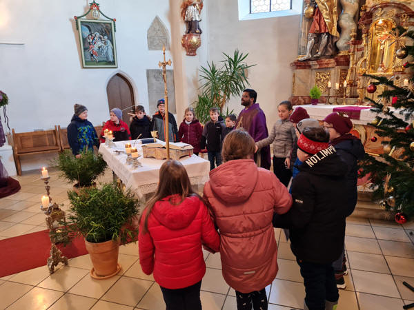 Erstkommunionkinder bringen Friedenslicht nach Moosbach am 18.12.2022