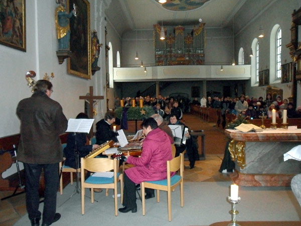| Die Stubenmusik des Kirchenchores unter der Leitung von Regina Christof. | |||