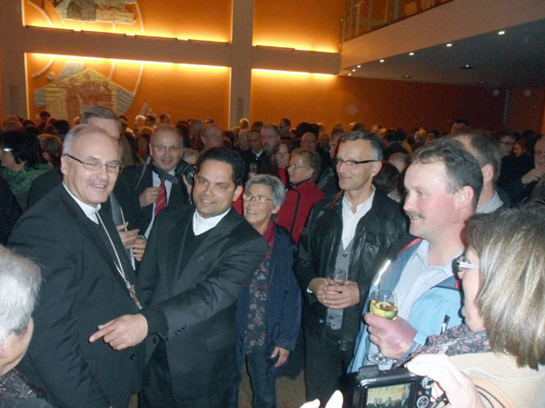und Pfarrer John Kodiamkunnel, vertreten. In seiner Predigt ging er unter anderem auf das seit seiner Bischofsweihe andere gefundene Wort für „Laie“ ein und fand das Wort „Weltchrist“ als eines der Besten. Zugleich sei dies aber auch als eine Aufwertung des Christseins, um Zeugnis für das Evangelium zu geben. Der