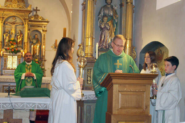 | Diakon Andreas Dierle durfte in Krailing erstmals das Evangelium vortragen | |||||