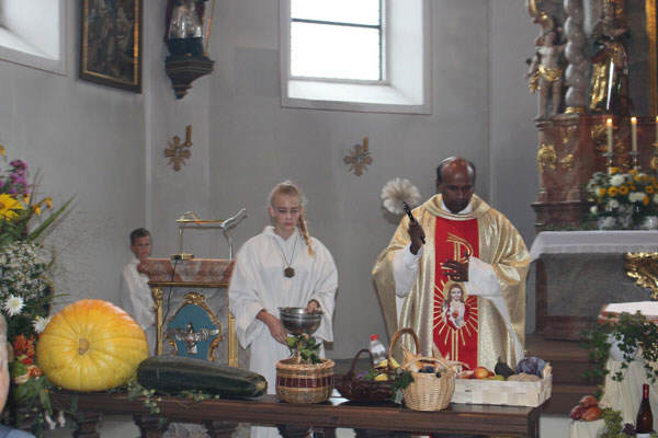 | Pater Alfons bei der Segnung der Erntegaben | |||||