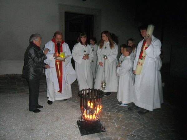 sprach er den Segen über das Feuer und bereitete die Osterkerze. Mit dem