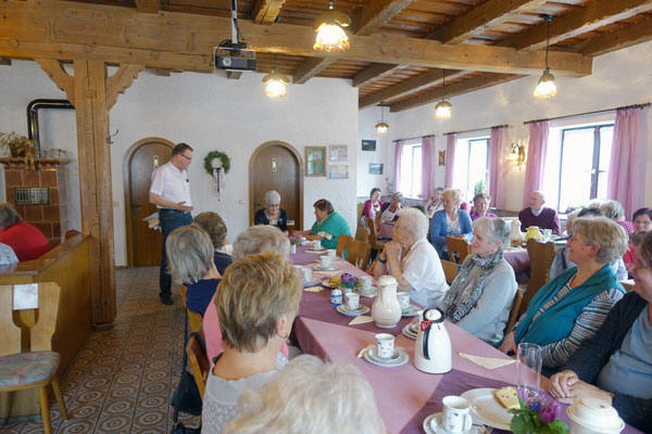 Nachdem man sich mit Kaffee und Kuchen gestärkt hatte erzählte Gerlinde Zweck eine kurze Anekdote vom Veterinär und hatte dabei die Lacher gleich auf ihrer Seite. Ebenfalls zum schmunzeln, war die Geschichte vom Kirchgang und die Beobachtungen dieser Kirchgängerin, welche mit Andacht, beim Gottesdienst in ihren Gedanken versunken war. Abschließend wies sie noch darauf hin, das am 14. Juni 2018 der nächste Ausflug nach Neukirchen beim Heiligen Blut, geplant ist. |